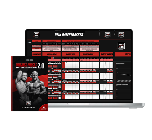 - Tracken aller relevanten Daten (Körpergewicht, Makros, Biomarker, Aktivität, Obst und Gemüse Zufuhr, usw.)