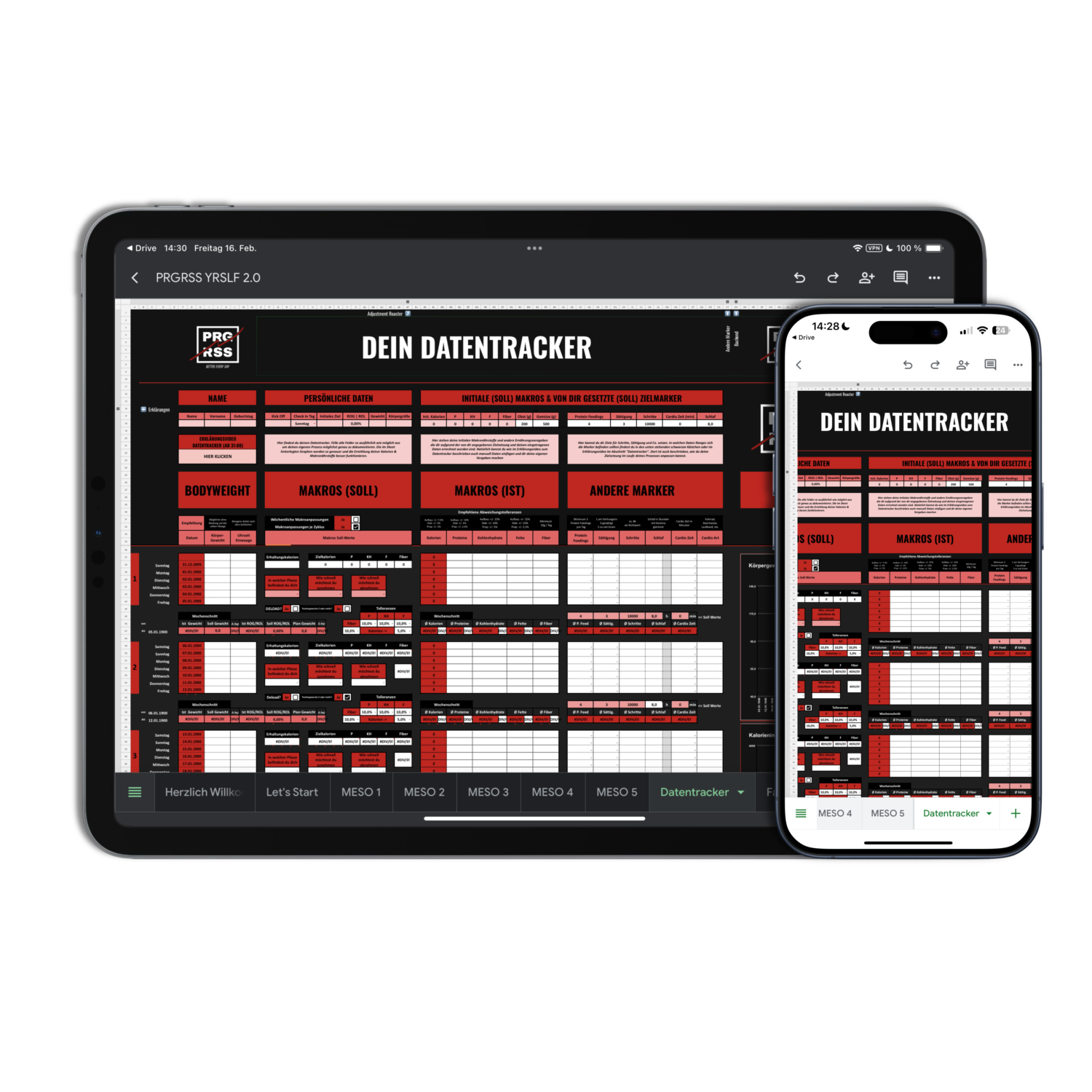 Mit PRGRSS YRSLF 2.0 kannst du deine Phasenplanung noch genauer und detaillierter angehen. Einfach angeben, ob und wie schnell du ab- oder zunehmen möchtest, und PRGRSS YRSLF 2.0 erledigt den Rest für dich. Profitiere außerdem von den neu implementierten Toleranzgrenzen für jeden Makronährstoff und deine Kalorienmenge. Vorankommen war noch nie einfacher!