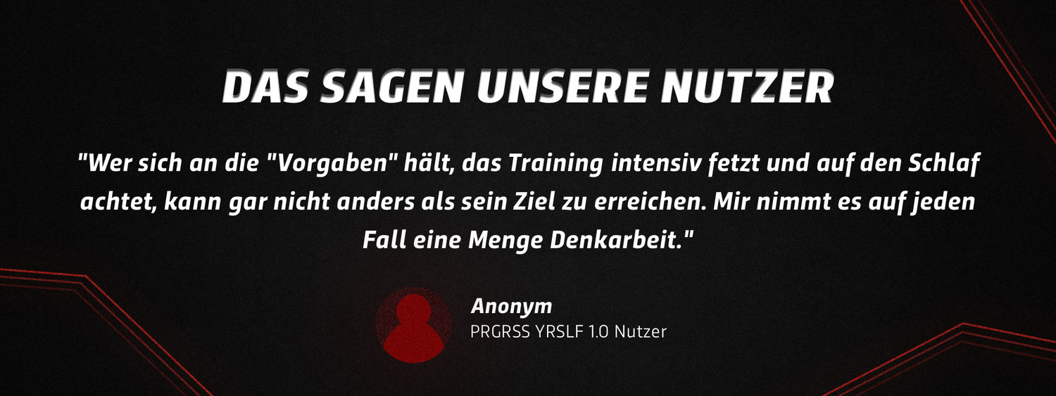 Mit PRGRSS YRSLF 2.0 haben wir die Welt des Selbstcoachings revolutioniert. Basierend auf dem Erfolg von PRGRSS YRSLF 1.0 haben wir unseren digitalen Assistenten auf ein ganz neues Level gehoben. Mit doppelt so vielen Trainingsplänen, einer schnelleren Benutzerführung und einer Vielzahl neuer Funktionen bieten wir dir ein noch umfassenderes Erlebnis. Entdecke PRGRSS YRSLF 2.0 noch heute und überzeuge dich selbst!