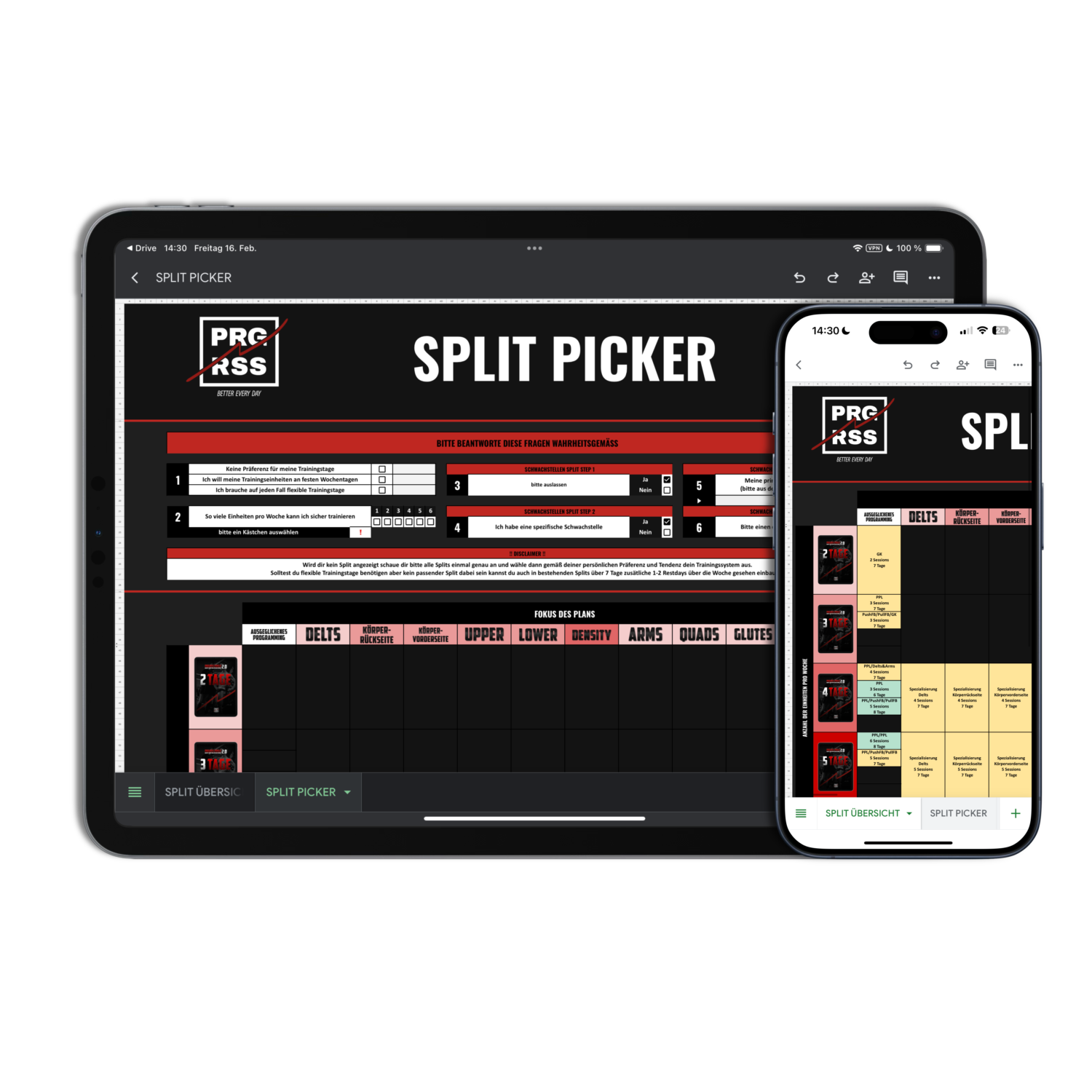 Der integrierte Split-Picker hilft dir dabei, aus unseren 35+ Trainingssystemen genau das Richtige zu finden. Beantworte einfach 6 kurze Fragen, und du erhältst den Split, der zu dir, deinen Zielen und deinen Schwachstellen passt. So kannst du optimal trainieren und deine Ziele erreichen!