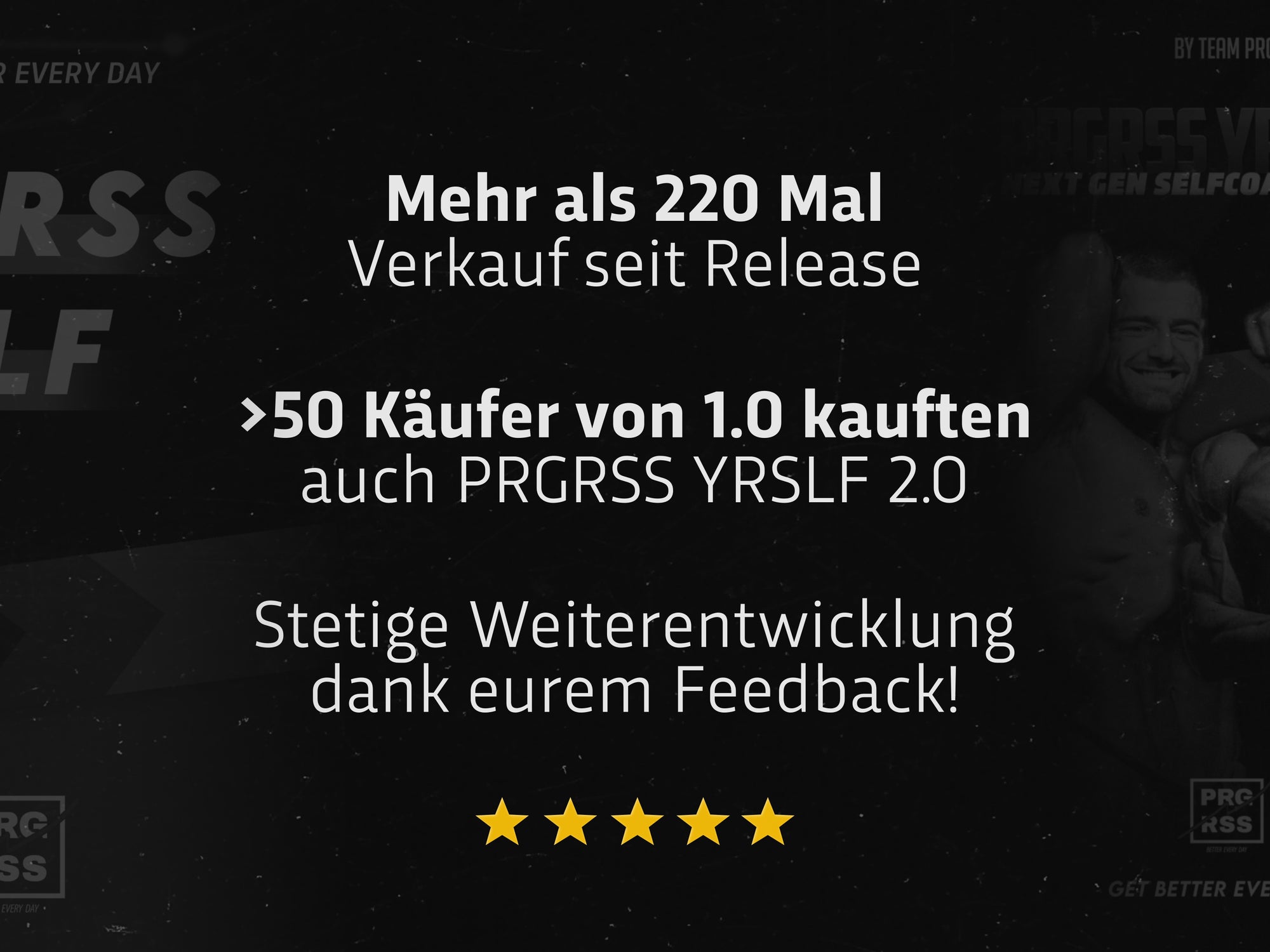 With PRGRSS YRSLF PRO, we've once again revolutionized the world of self-coaching. No other training program offers this scope, and the intelligent data tracker replaces many a coach in terms of accuracy and objectivity. Discover PRGRSS YRSLF PRO now and unlock your potential – directly and without overthinking.