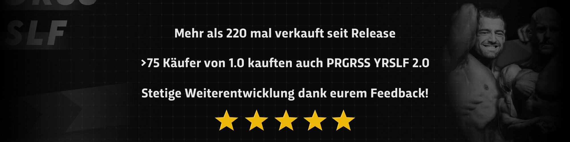 Whether it's the exercise selection, your set volumes per session or overall programming, or the predefined rep ranges – with its versatile and customizable parameters, you can completely personalize PRGRSS YRSLF PRO to your own experience! In your own programming, you even have 100% freedom in designing your plan.