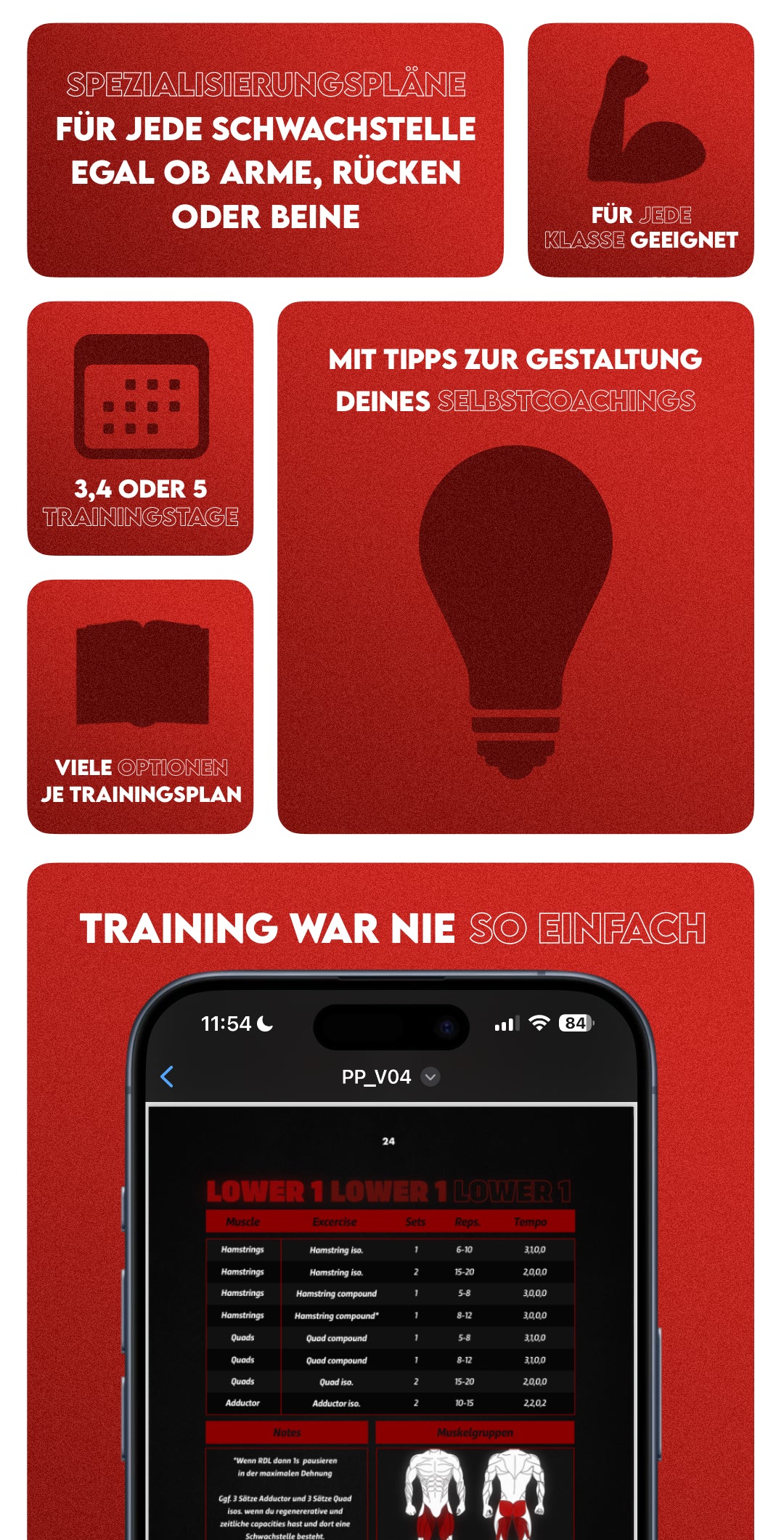 PRGRSS PLANNING ist alles was du zur Trainingsplanung brauchst. Egal auf welche Muskelgruppen oder Klasse du den Fokus legen möchtest.