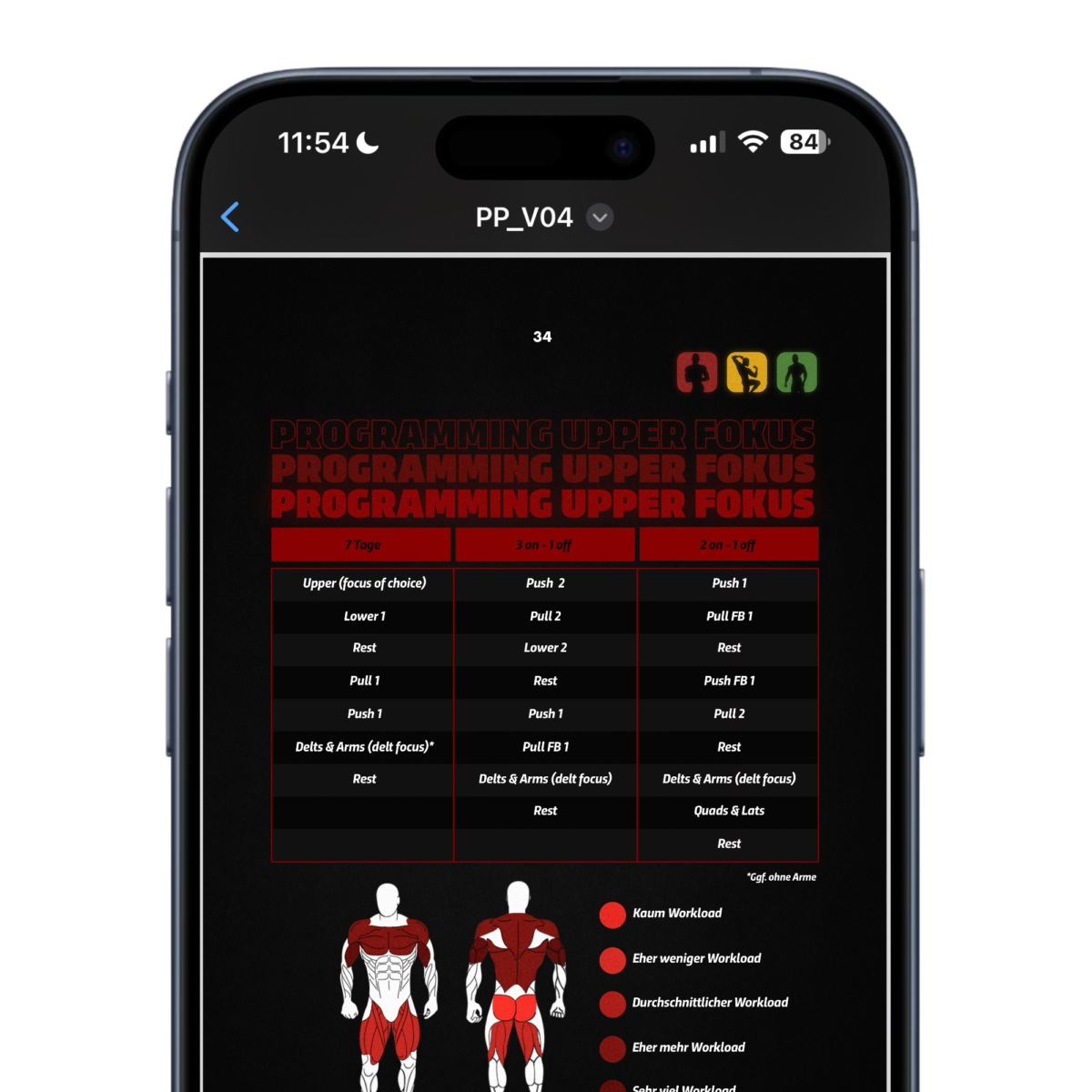Je nach Zielsetzung beinhaltet PRGRSS PLANNING diverse und Splits. Teilweise 2 oder sogar 3 verschiedene. So kannst du nicht nur deinen Trainingsplan frei aussuchen sondern auch aus einem großen Pool an Bewegungsmustern wählen um die Übungen in deinem Programming zu intergrieren die dir liegen.