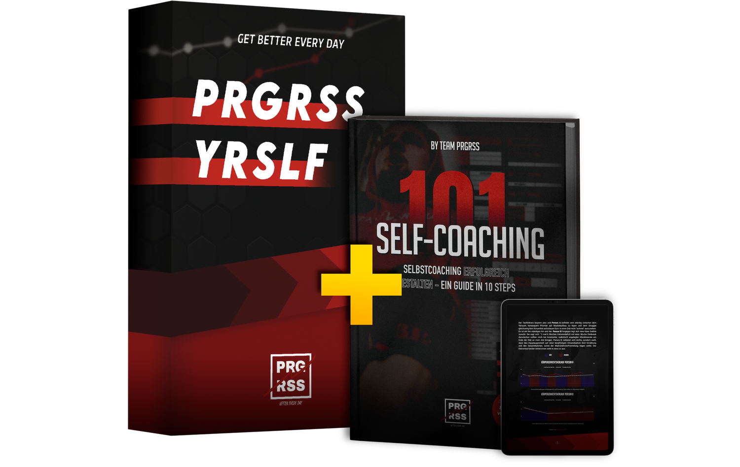 Bei jedem kauf erhältst du unser E-Book "101-Selfcoaching" im Wert von 24,90€ kostenlos dazu. In Kombination mit PRGRSS YRSLF steht deiner Selbstcoaching Journey nichts mehr im Wege. Theorie + Praxis in einer einzigartigen Symbiose vereint.