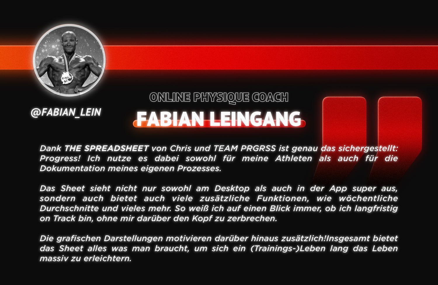 Gaining Phase, Fatloss Phase, Pre Prep Cut oder Wettkampfdiät: THE SPREADSHEET ermöglicht dir die Phasenplanung deiner Athleten im voraus zu gestalten und so eine Outline für die kommenden Monate und Jahre zu zeichnen. So weißt du und deine Klienten ob ihr in time seid oder nicht.